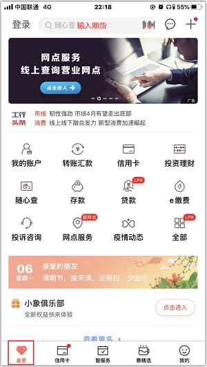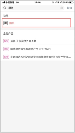 登录手机银行APP,在“最爱”页面(首页)上方输入栏输入“期货”;