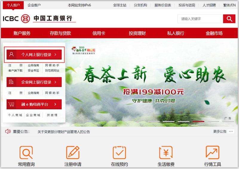 登录工商银行网上银行,选择个人网上银行登录(中国工商银行官方网址:http://www.icbc.com.cn);