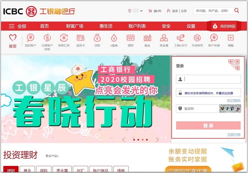 输入网银用户名密码或扫码登录,登入工商银行个人网银;