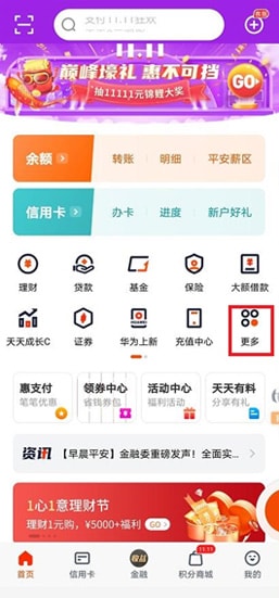 打开手机网银,点击“更多”,进入详细菜单页面。