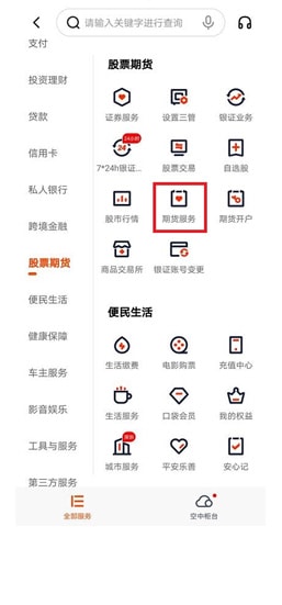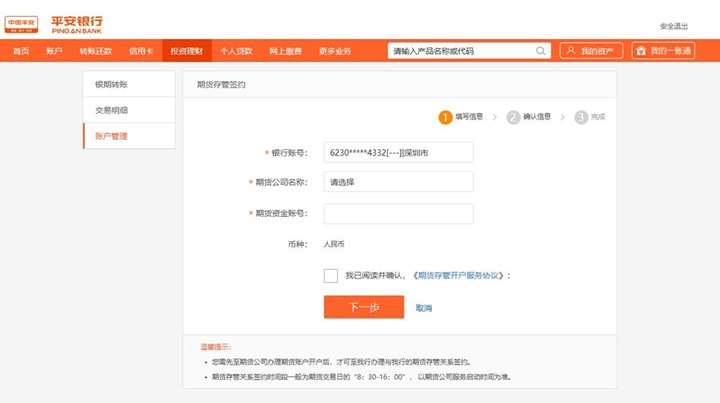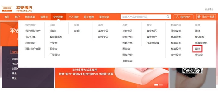 进入网银后,点击“投资理财”-“其他“-”期货“,而后便可进入银期业务界面。