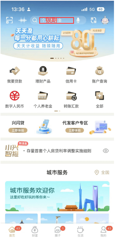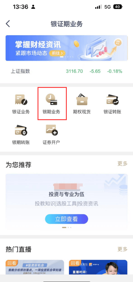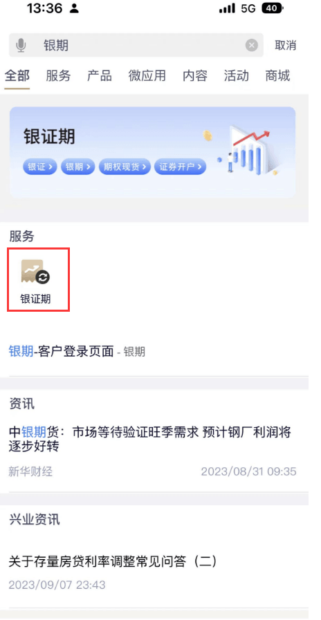 登录兴业手机银行APP,上方查找栏输入“银期”并进行查找