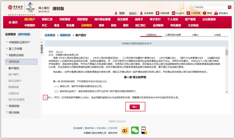 1、登录企业网银,投资理财→银期转账→签约管理→银期签约,选择银行结算账户、期货公司。