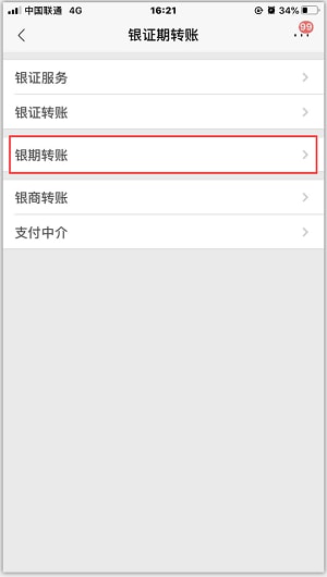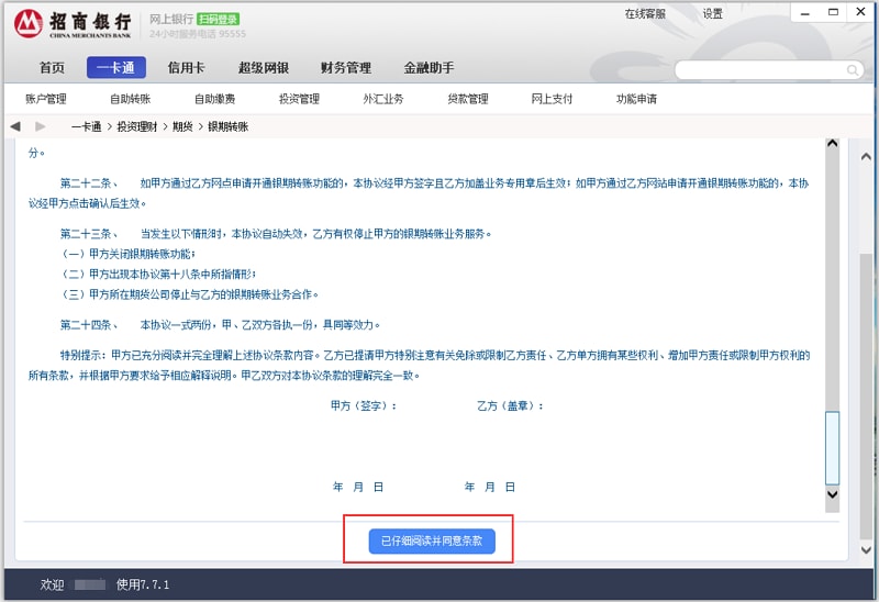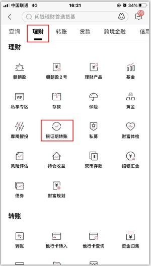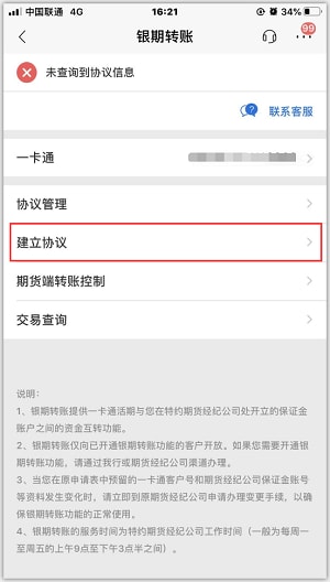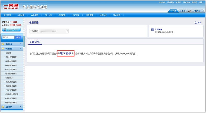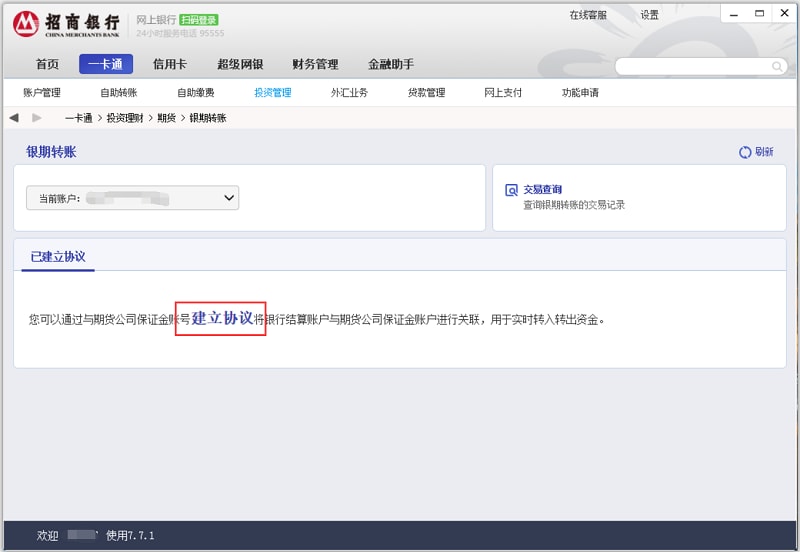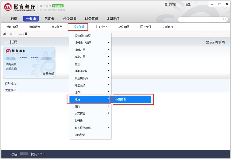 选择“一卡通”-“投资管理”-“期货”-“银期转账”;