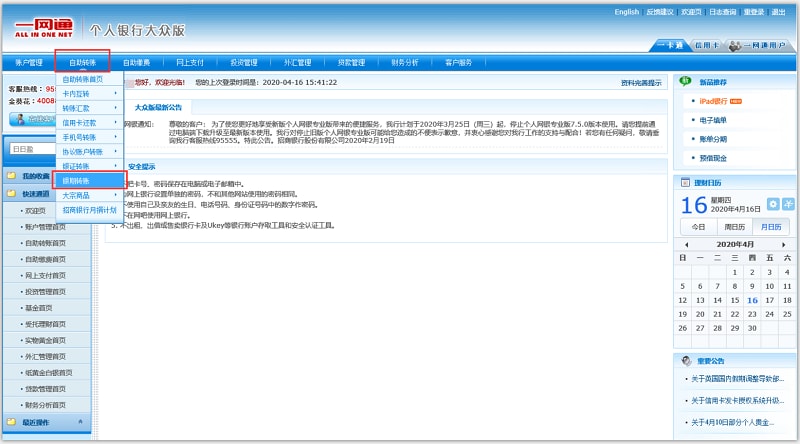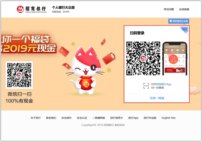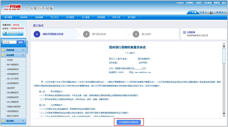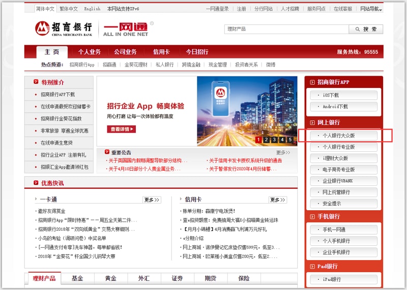 登录招商银行网上银行,点击“个人银行大众版”(招商银行官方网址://http://www.cmbchina.com);